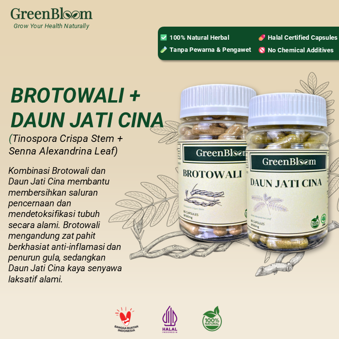 GreenBloom Detox Usus & Hati – Brotowali + Daun Jati Cina | Herbal Pelancar BAB & Detoks @80 Kapsul
