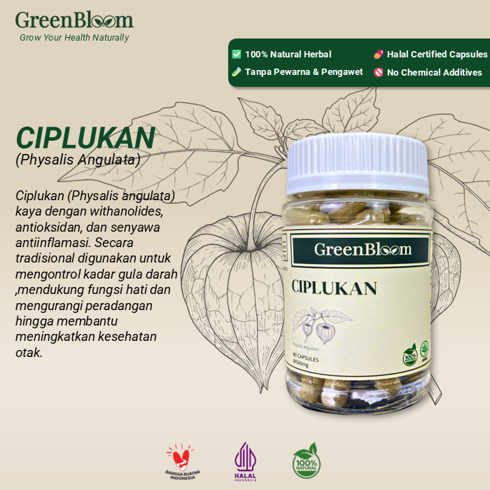 GreenBloom Ciplukan – Stroke, Terapi Syaraf dan Otak, Diabetes, Peradangan | Obat Herbal Jamu Kapsul