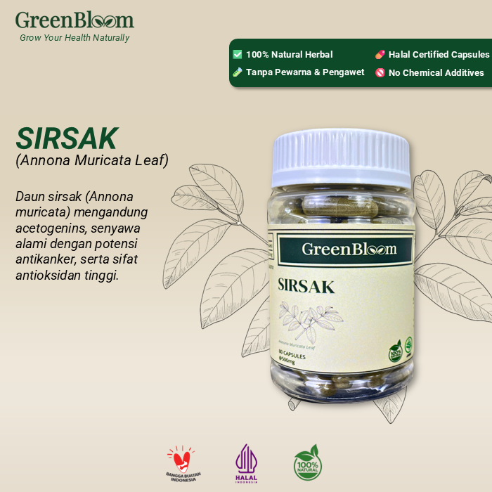 GreenBloom Sirsak – Kanker, Tumor, Kista, Endometriosis, Adenomiosis, PCOS | Obat Herbal Jamu Kapsul